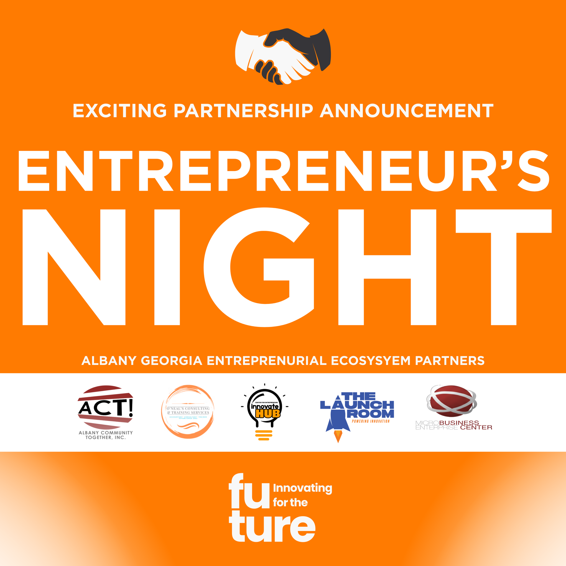 Albany Community Together (ACT!), Innovate Hub, The Launch Room, O’Neal Consulting & Training Services, and The MicroBusiness Center have announced a strategic partnership centered around Entrepreneur’s Night, a recurring networking and resource-driven event designed to foster connection, collaboration, and economic growth throughout Southwest Georgia.